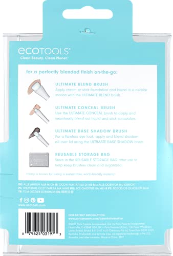 Il kit include: (1) pennello Ultimate Blange, (1) pennello Ultimate Nascondi (1) pennello Ultimate Base Shadow (1) sacchetto di immagazzinaggio riutilizzabile