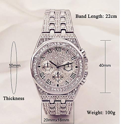 Completamente ghiacciato con brillanti cristalli strass brillanti, i numeri romani Easy Reader sul quadrante sono pieni di cristalli di rocca e hanno eleganti ore reali, minuti e secondi.