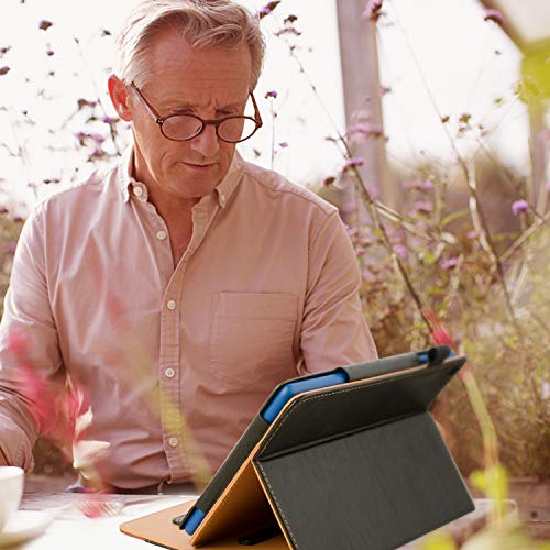 Tutto nuovo custodia in pelle HD 8 Tablet (7th/6th Generation, 2017/2016 Released), funzione Auto Sleep/Wake leggero multi-angolo supporto per casse documento e biglietti da visita con tasca #0-Black/Brown