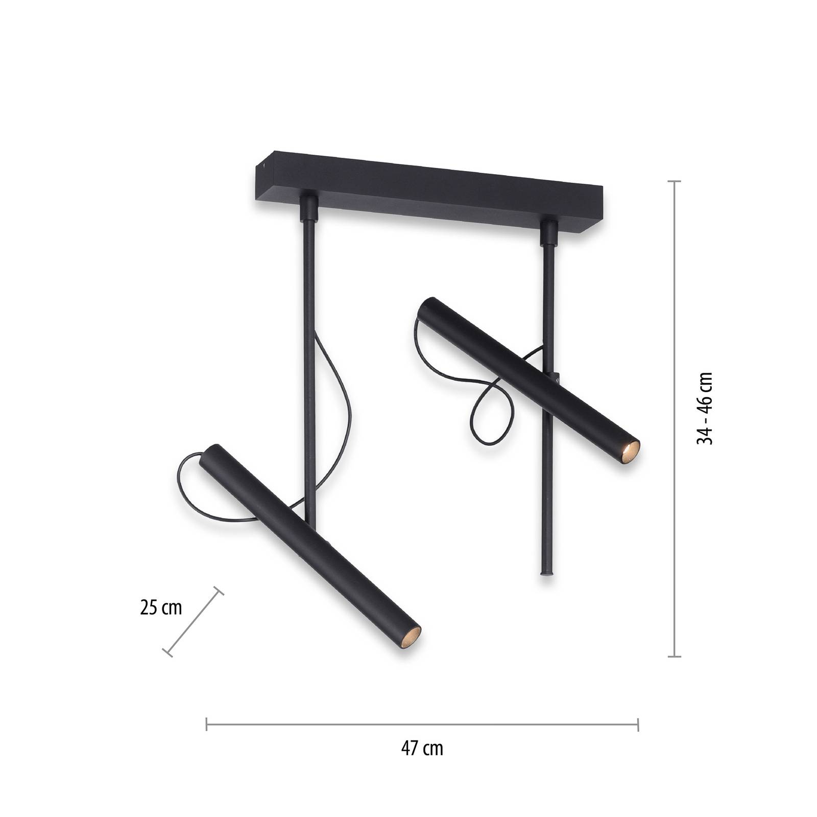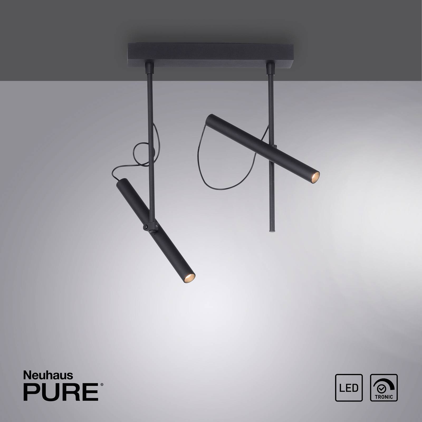 Plafoniera LED a due lampade Pure Tutua con spot tubolari La plafoniera LED Pure Tutua colpisce per il suo design particolare. Alla calotta cuboide sono fissate due aste strette e corte, a ciascuna delle quali è attaccato un punto tubolare. Gli spot possono essere allineati in modo flessibile e irradiano la luce calda in modo selettivo nell'ambiente. La lampada da soffitto è particolarmente adatta per illuminare aree o oggetti specifici. Con un dimmer Tronic esterno è possibile regolare la luminosità.