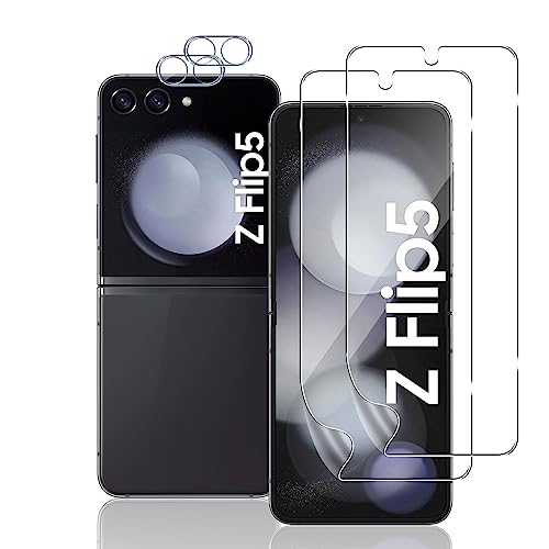 TUTUO [2+2 Pezzi Pellicola Protettiva Compatibile con Samsung Galaxy Z Flip 5 Pellicola Protettiva + Fotocamera Vetro Temperato, Soft 3D TPU Protezione Film, Anti-Scratch HD Camera Protezione