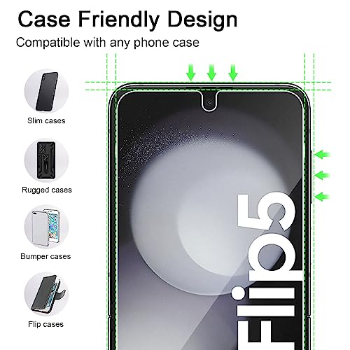 【Design ultra trasparente】: Vetro trasparente HD 99,99% compatibile con Samsung Galaxy Z Flip 5 garantisce un'immagine realistica ed enfatizza il senso dello stereo. Questo ti farà dimenticare l'esistenza della protezione per lo schermo. La protezione dell'obiettivo della fotocamera HD al 99,99% non influisce sul flash ad alta definizione per assicurarsi che il pixel originale sia per immagini e video.