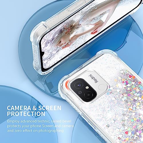 TUUTPU Cover Glitter per Xiaomi Redmi 12C/Redmi 11A con Cordino, Custodia Brillantini con Collana Ultra Sottile Silicone Trasparente Antiurto Protettivo Case per Cellulare Cordoncino - Oro Rosa