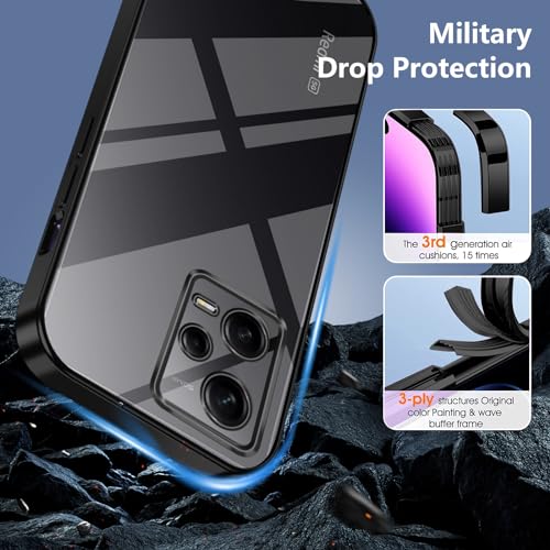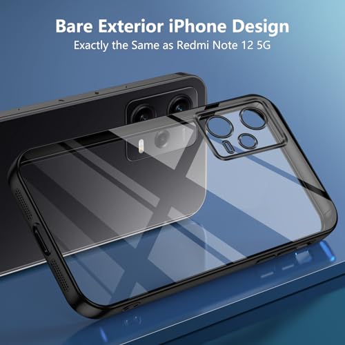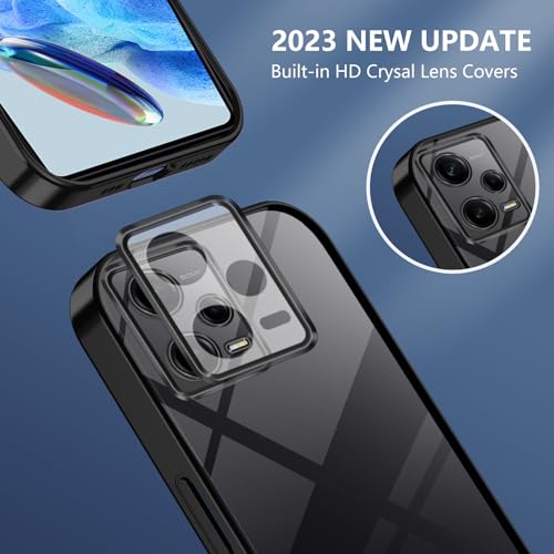 TUUTPU Cover per Xiaomi Redmi Note 12 5G, Custodia Trasparente per Sottile Silicone TPU Morbido con [Copertura della fotocamera] [Non ingiallente] Antiurto Protezione Clear Telefono Case - Nero