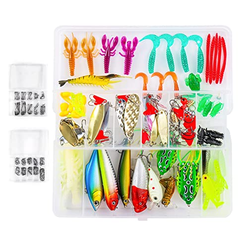 Accessori di tipi multipli: Questo set contiene 234 diversi tipi di esche da pesca e accessori, tra cui diverse esche da pesca, girelle a botte, perline da pesca, teste jig, platine di piombo, esche morbide, ami offset, spinnerbaits, esche da cucchiaio e altri attrezzi da pesca.
