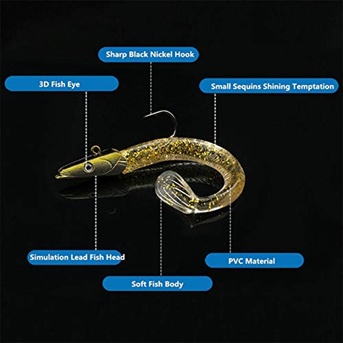 Tuzhitech 11cm Vivace Testa di Pesce Morbido Esche da Pesca Esca per Affondamento Piombo Jigging per Oceano - I Regali di Pesca per Uomo Nero