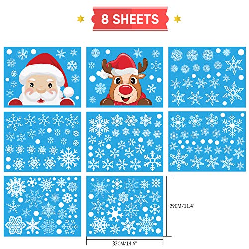 Contenuto della confezione: 8 fogli di 178 adesivi natalizi per finestre (29 x 37 cm), inclusi pupazzo di neve, fiocco di neve, Babbo Natale, renna. Queste decalcomanie natalizie sono ideali per vetrine di negozi al dettaglio, decorazioni per la casa e faranno una bella esposizione innevata.