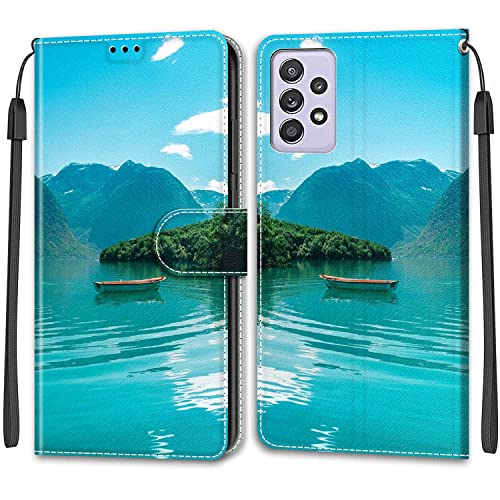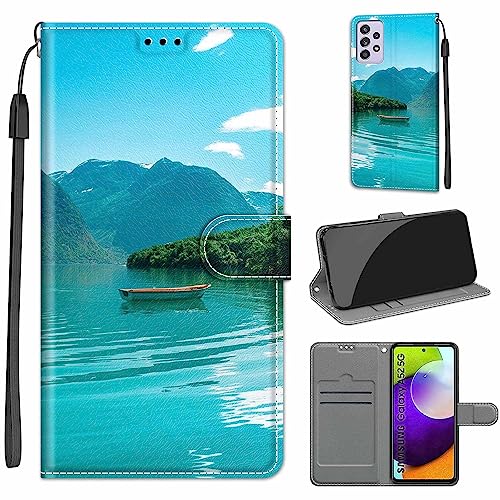 Tveinan Cover per Samsung Galaxy A52 5G / 4G / A52S 5G Custodia a Libro in PU Pelle Premium, Portafoglio Slot Flip Case Antiurto con Modello Cover per Samsung A52 5G / 4G / A52S 5G, Paesaggio Verde