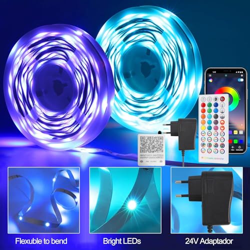 TVLIVE Striscia led 10 metri, RGB con Telecomando, App Controllata, Musicale e Timer, Luci per decorazioni Camera da Letto, Feste Casa