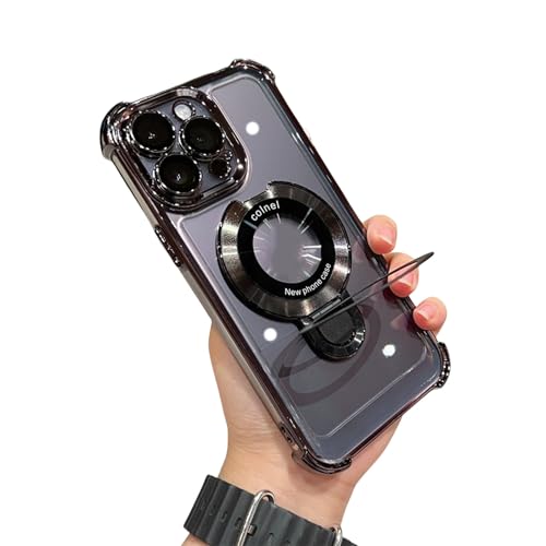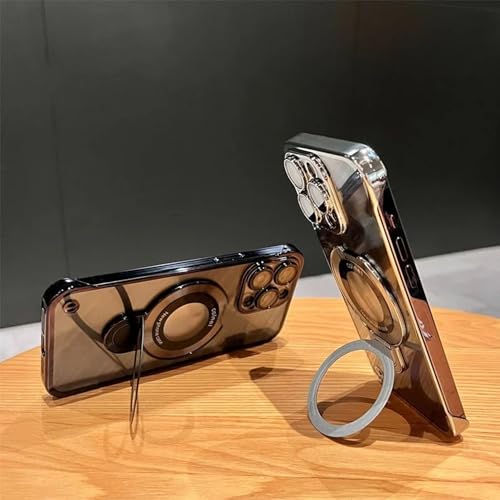 Twaynorb Frameless Magnetic for iPhone 15 PRO Max 14 13 Clear Magnetic Case with Invisible Ring Stand (for iPhone 15ProMax,Black)