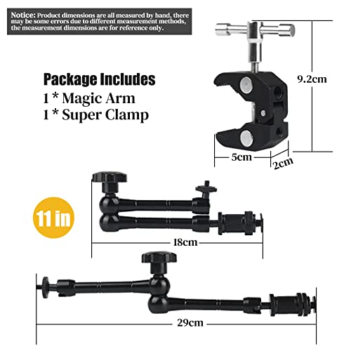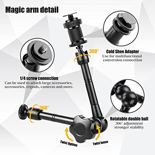 Rotazione di 360 °: il braccio magico da 11 pollici è controllato da una manopola di regolazione in metallo rosso, è possibile regolare l'angolo di articolazione dei due bracci con 360 ° avvitando delicatamente la manopola rossa. L'angolo è flessibile e lo scatto è più conveniente .