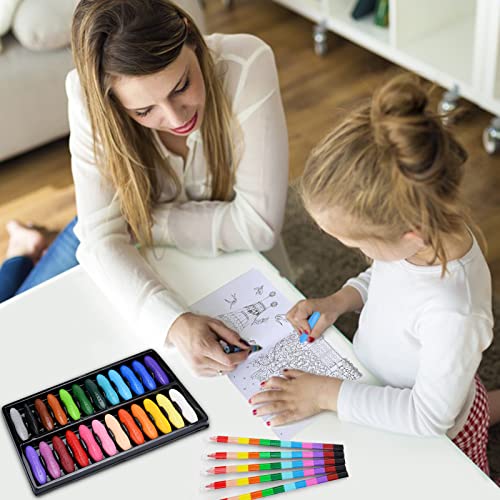 TWBEST Pastelli a cera per bambini, lavabili in modo sicuro, per bambini, graffiti pittura, Pasqua, matite colorate per la scuola, (24 pastelli colorati + 5 penne colorate + 1 quaderno da disegno)