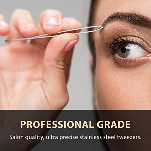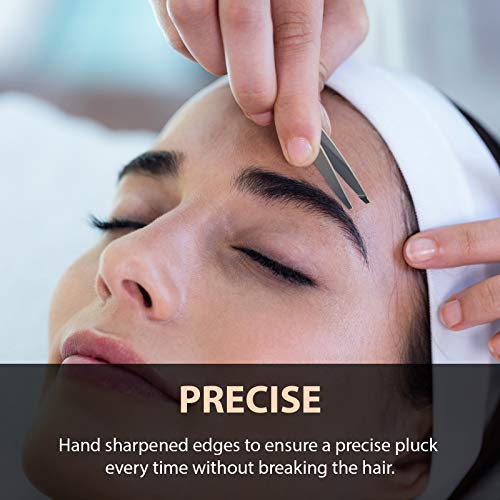 Tweezees Precision Stainless Steel Tweezers - Professional Slant Tip & Splinter Tip Tweezer - Extra Sharp Hair Removal Tool - Best Set for Eyebrow Shaping for Women and Men - Perfectly Aligned for Ingrown Hair Treatment - 100% Satisfaction Guarantee