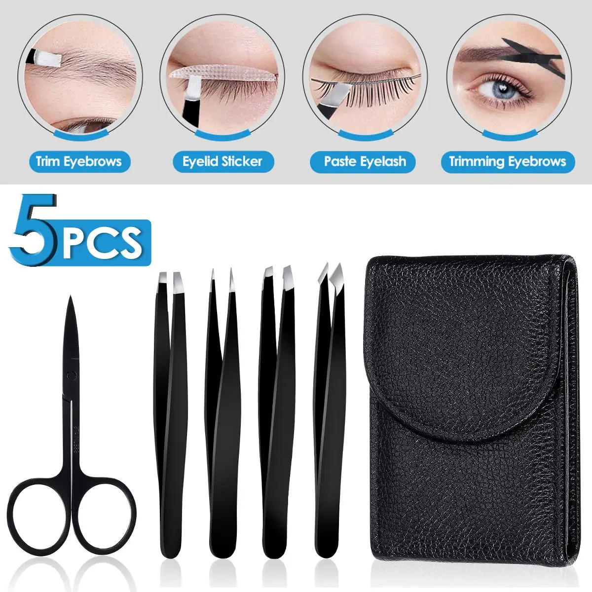5Pcs Tweezers Eyebrow Tweezer Set Stainless Professional Eye Lashes Extension Tweezers Eyebrow Scissors Cosmetic Tools With Bag