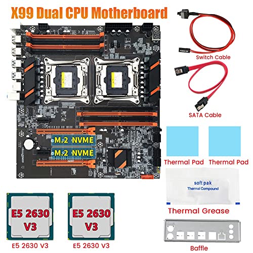Tweovnai X99 Dual CPU Motherboard+2XE5 2630 V3 CPU+SATA Cavo+Baffle+Thermal Grease LGA 2011 8XDDR4 Slot Support 2011 V3 CPU