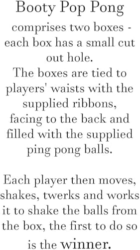 Questo gioco super divertente mette le tue abilità twerking alla prova! Riempi la tua scatola con le palline da ping pong fornite e corri per vedere chi può svuotare la scatola il più veloce.