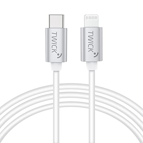 TWICK Cavo USB C a Lightning da 20 W - USB tipo C, PD 3.0 Fast Charger/Data Lead 2 M/1,8 m [certificato MFi] | iPhone 13/12/11 Mini Pro Max, X/XS, XR, SE, 8S, 7S.6 | iPad, Thunderbolt 3, MacBook (2M)