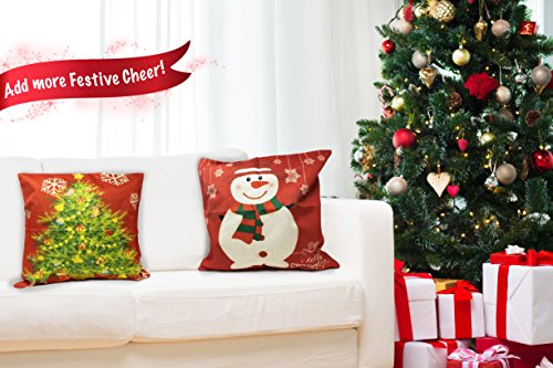 THE TWIDDLERS 4 Pezzi Federe per Cuscini Natalizi, Copri Cuscini Quadrata, 43x43cm| 4 Motivi Natalizi, Lino in Cotone di Alta qualità, Cerniera Nascosta| Decorazione Natalizia per Divano Letto Casa.