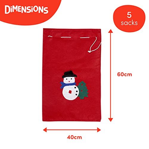 THE TWIDDLERS - 5 Sacchi di Natale, Sacco Rossi di Babbo Natale, Sacco per Regali Natale, 60cm / Feltro Premium, Ecologico, Resistente