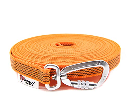 Twinkys Dog Style Drag Leash Guinzaglio per Cani, gommato con moschettone di Sicurezza Largo 20 mm per Cani Fino a 50 kg - con Cinturino da 10 Metri Arancia