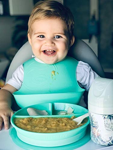 Twistshake Set di 2 Bavaglini di Plastica per Bambini 4+ mesi - Blu/Verde