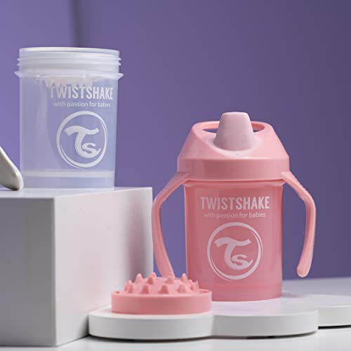 Twistshake 2x Mini Bicchiere Da Bere Per Bambini Con Beccuccio Morbido E Frullatore Di Frutta - 230ml | Bicchiere A Prova Di Perdite | Senza BPA | Tazza per l'apprendimento | Bianco Rosa