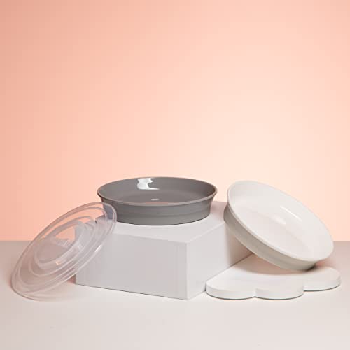 Twistshake 2x Piatti Per Bambini Con Coperchio Ermetico | Piatti Per Bambini | Senza BPA | Piatto Per L'addestramento Alla Pappa | Bianco Grigio
