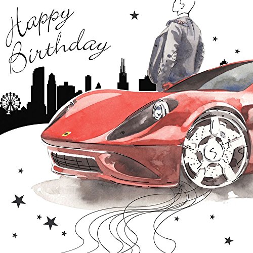Twizler Happy biglietto di compleanno per lui con lamina argento, unico effetto acquerello - Red Sports Car - maschio biglietto di compleanno