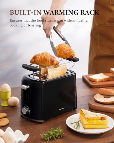 TWOMEOW Tostapane 2 Fette, Auto-Centre Tostapane, Tostapane Con Pinze Con 6 Livelli Di Cambio Colore + Scongelamento, Con Fessura Di Tostatura Extra Larga (30 mm), 750W, Aumento Automatico riscaldator