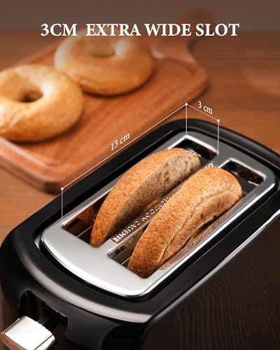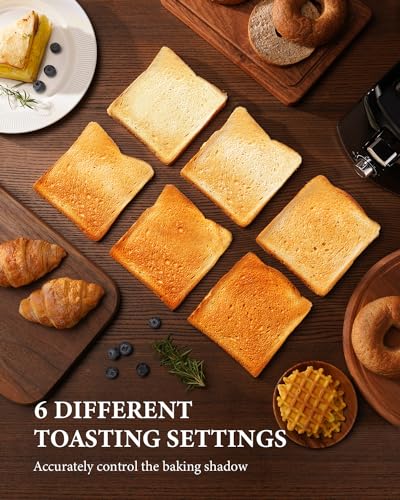 [2 fessure extra larghe] Tostiera è dotato di 2 fessure larghe e profonde, adatte a tostare rapidamente una varietà di pane, come toast, fette di panino, baguette, waffle e bagel. Potrete gustare una deliziosa colazione a casa.