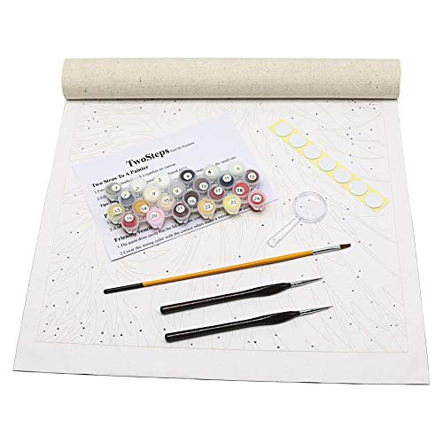 YOU CAN GET - TwoSteps Paint By Number kits include 3 pcs Fine Paintbrushes,1 pc pre-printed textured art canvas(rolled,no frame),1 set acrylic paints,1 pc Magnifier,7 pcs double sided adhesive