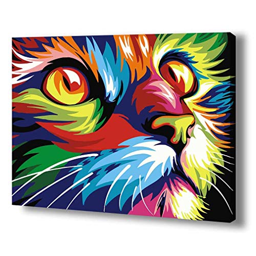 TwoSteps Paint By Numbers For Adults Kids Paint By Number Kits Rolled Canvas Fine Paintbrushes DIY Painting By Numbers 16x20inch Abstract Colourful Cat