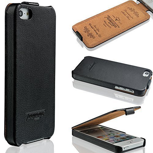 Twoways, Custodia protettiva per iPhone 5/5S, in vera pelle, fatta a mano, colore nero