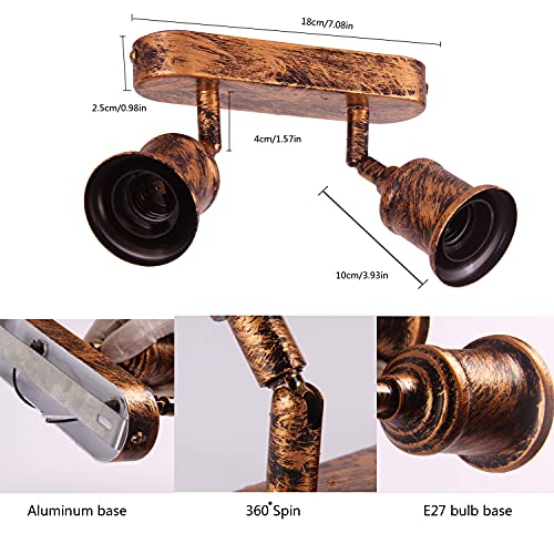 TWSXTE Plafoniera, Applique industriali, Spot Bar Retro Design, 2 punti girevoli soffitto, illuminazione da soffitto vintage, prese E27, 60W max, (senza lampadina)