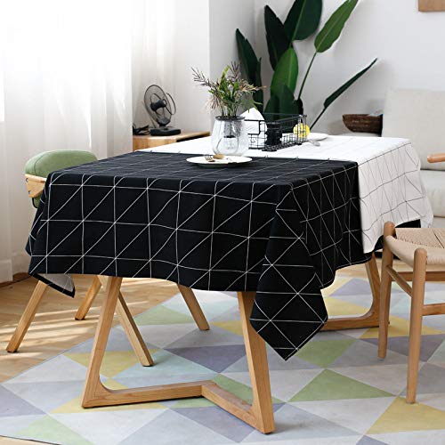 TWTIQ Moderno Plaid Quadrato Bianco e Nero tovaglie Impermeabili in Cotone e Lino tavolino tovaglia tovaglie tovaglia Nera 140x180 cm