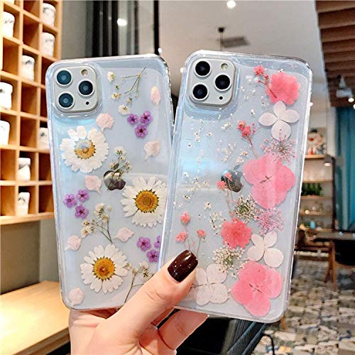Tybaker - Cover per iPhone 11 Pro Max, con fiori veri, in gomma trasparente e cristalli, realizzata a mano, motivo floreale colorato