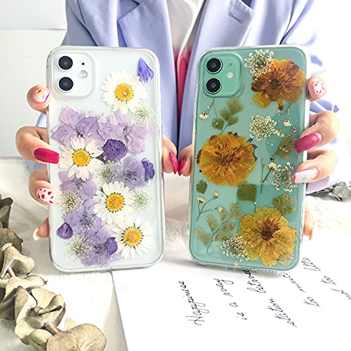 ❀ Custodia per iPhone 11 Pro Max, fiori naturali essiccati per il fai da te, design unico con fiori secchi, rende il tuo telefono più attraente e alla moda.