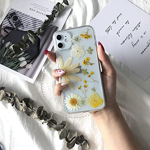 Tybiky Cover per iPhone 11 con fiori veri, Sparkly Bling Cristallo Morbido Flessibile Gomma TPU pressato Secco Fiori Inmortali Case Cover Cover Cover Cover per iPhone 11 Mezza Crisantemi
