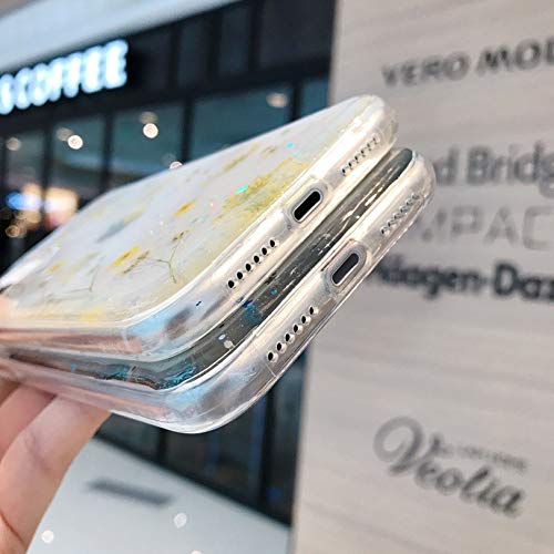 Tybiky, custodia protettiva per iPhone 11, decorata con veri fiori secchi, design sottile, struttura in TPU, cover compatibile con iPhone 11, fiori pressati di colore giallo