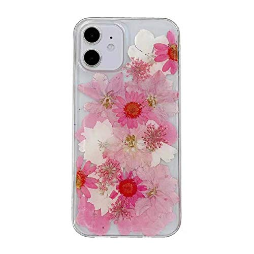 Tybiky, custodia protettiva per iPhone 11, decorata con veri fiori secchi, design sottile, struttura in TPU, cover compatibile con iPhone 11, fiori di colore bianco e rosa