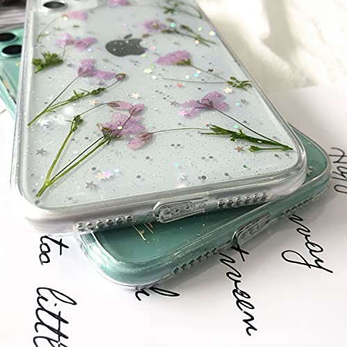 Tybiky Custodia protettiva per iPhone 13 Pro Max, realizzata a mano, con veri fiori secchi, realizzata a mano, per Apple iPhone 13 Pro, colore: lilla