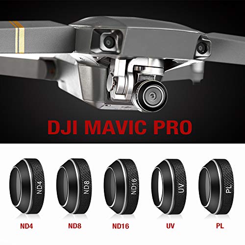 ✦【Set 5 pezzi di filtri per drone】- Compatibili solo con DJI Mavic Pro e Mavic Platinum, il set di filtri ND è composto da filtri UV (1), PL (1), ND4 (1), ND8 (1) e ND16 (1), per ridurre la velocità dell'otturatore. Nota: il drone DJI Quadcopter non è incluso.
