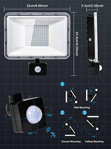TYCOLIT Luci di sicurezza 100W Sensore di movimento esterno, IP67 Impermeabile 10000LM LED Proiettore con PIR, 6500K Daylight White Super Bright Luci da parete per giardino, garage, cortile