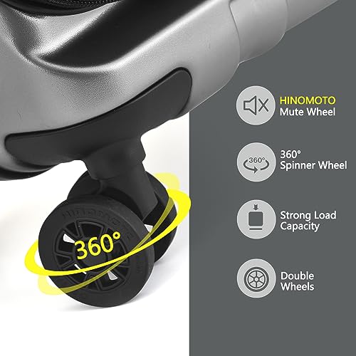 TydeCkare 16" Bagaglio a Mano con 2 Scomparti per Laptop, Valigia con Lucchetto TSA a Doppio Controllo, YKK, 4 Ruote Girevoli, per Di Lavoro, Grigio Argento