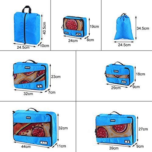 Tyhbelle kleidertasche Packing Cubes Pack Dadi 7 pezzi bagagli Set Ultra Leggeri Ver stauer ideale per viaggi, Lago Sacchi, bagaglio a mano e zaini 7-teiliges Set, Blau