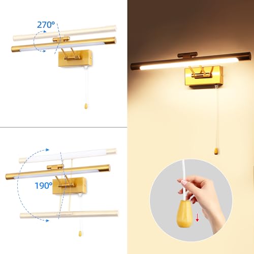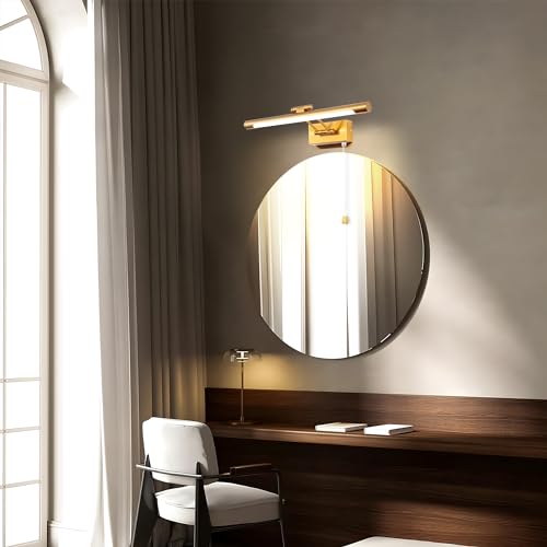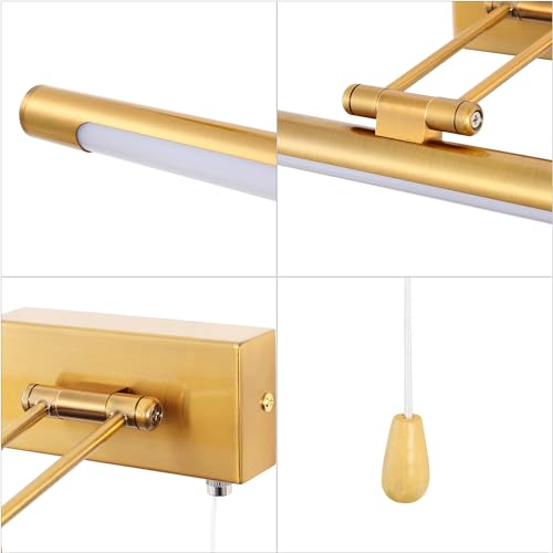 TYhogar LED Applique Parete Lampada 40cm 8W Illuminazione Specchio da Bagno IP44 3000K Ottone Braccio dritto Regolabile Portalampada Luce Dell'immagine Luci Lettura Comodino Con Tirare l'interruttore