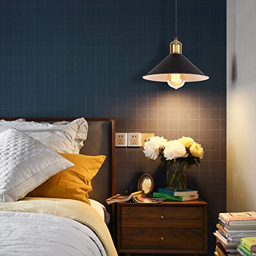 TYhogar Lampada a Sospensione Vintage Industriale Ferro Ombrello Paralume Retrò luce pendente Lampada Interni Illuminazione Per Bar Fattoria E27 Soffitta Lampada Plafoniera Luce Nero (Senza lampadina)