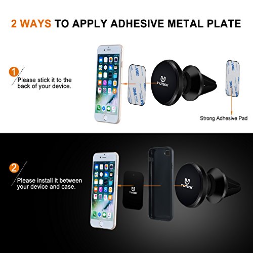 TYJTECH Supporto Auto Smartphone Magnetico 360 Gradi rotazione regolabile in Alluminio Porta Cellulare Auto Universale per iPhone 7 / 7 plus / 6 / 6 plus / 5 / 5S, Samsung Note 8/Galaxy S8 (Nero)