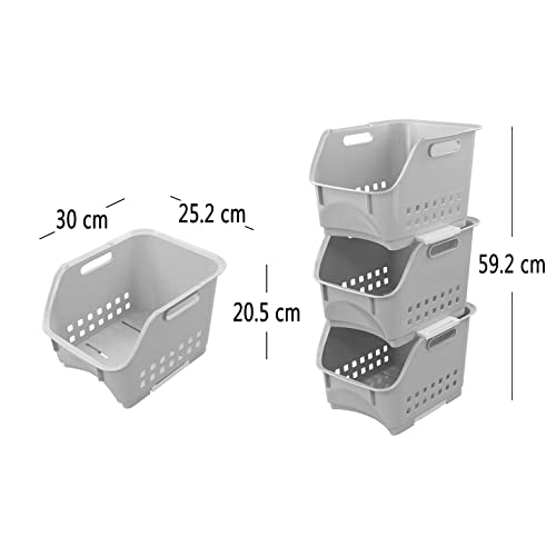 Tyminin Cestini impilabili in plastica, portafrutta e verdura da cucina, set di 3, grigio