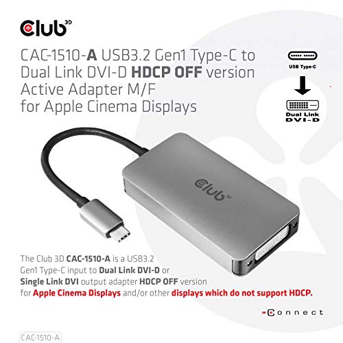 Club 3D 3D Gen1 Type-C a Dual Link DVI-D HDCP off Version Adattatore Attivo S/B per Apple Cinema Displays, CAC-1510-A